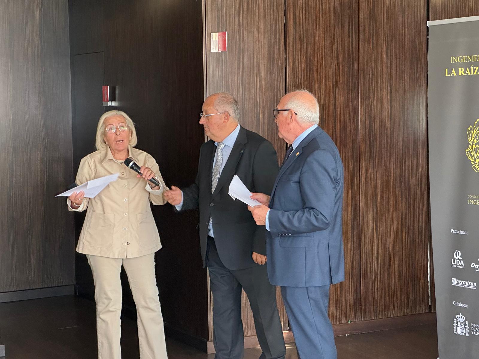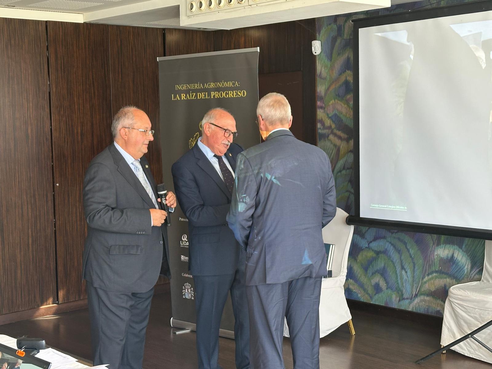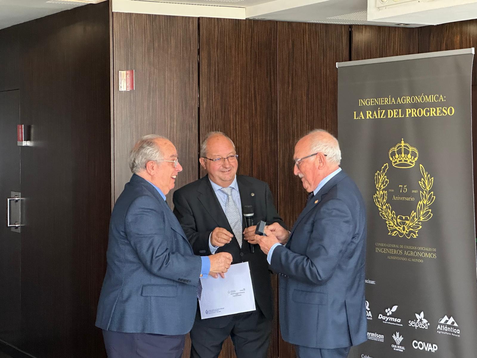 Acto seguido, los decanos de los colegios oficiales de ingenieros agrónomos tomaron la palabra para hacer un recorrido por la historia de cada uno de sus colegios y, a continuación, entregaron los diplomas e insignias a los colegiados homenajeados durante el acto: