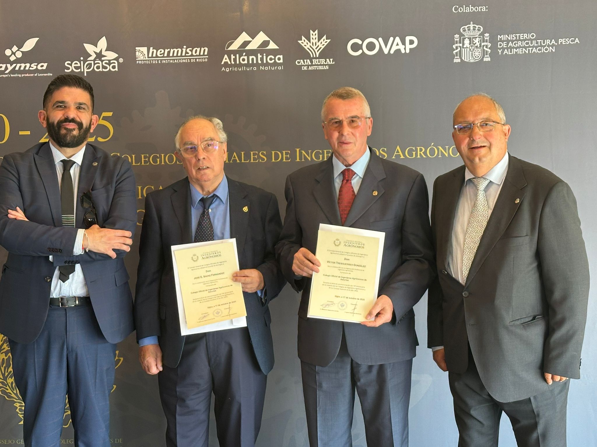 Calvo recordó su participación en el primer acto conmemorativo del aniversario, celebrado el pasado mes de mayo en Madrid, y felicitó tanto al CGCOIA como a los colegiados homenajeados en Gijón. Además, subrayó que la ingeniería agronómica “está más viva que nunca” y que “su papel es clave en sectores que serán determinantes para el futuro, como la energía, el agua o la economía circular”.